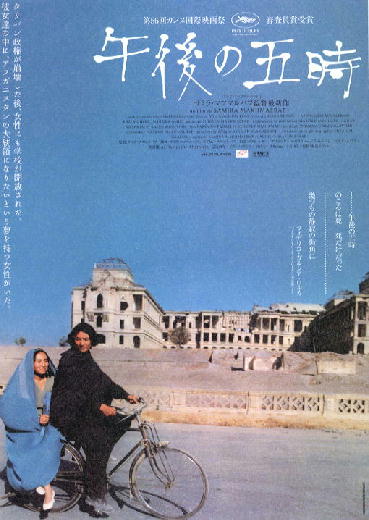 タリバン政権下のアフガニスタンでは、映画を製作したり見ることも禁じられていました。しかし、2001年9月のタリバン政権崩壊後、人々はこのような抑圧から解放され、女性たちは学校へ行くことができるようになりました。イランのサミラ・マフマルバフ監督が、22歳のときに撮影した映画「午後の五時」は、サミラ監督と、監督がカブールの街を歩いて探した主人公を演ずる女性アゲレとの出会いによって生まれた作品です。