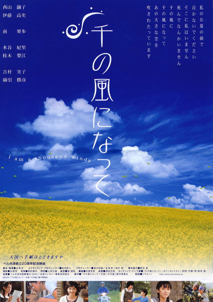 新井満氏が、上記の英語の詩もとに書いた『千の風になって』が、ベストセラーとなりました。お読みになった方もいらっしゃるでしょう。マリリン・モンローの追悼で読まれたり、9.11で父親を亡くした少女が一周忌で朗読したりしてきた詩です。新井氏が“死と再生の詩”と呼んでいるこの詩は、愛する人を亡くした者の心をなぐさめ、語りつがれてきました。