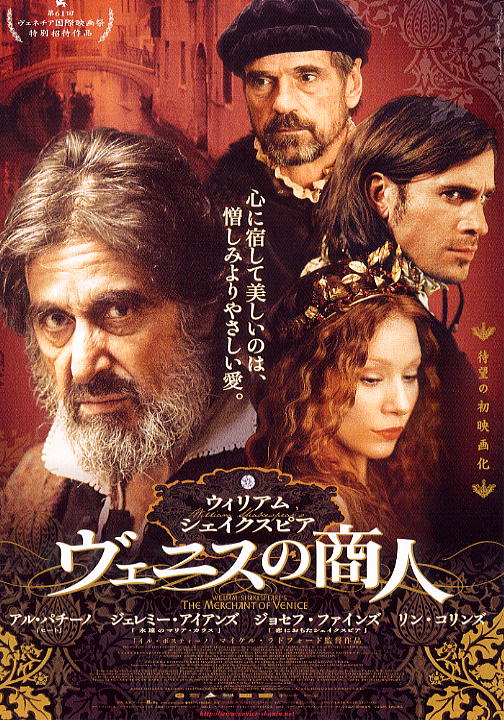 16世紀、ヨーロッパの貿易で栄えた運河の街、イタリアのヴェニスには、キリスト教徒から差別されているユダヤ人たちがいた。彼らは、高利貸としてゲットーの中に住まわされ、そこから外に出るときには、赤い帽子をかぶることが義務づけられていた。ある日、赤い帽子をかぶった高利貸のシャイロック(アル・パチーノ)は、貿易商のアントーニオ(ジェレミー・アイアンズ)を見つけ声をかけるが、アントーニオからつばをかけられ侮辱される。しかし、アントーニオに反発することはできなかった。