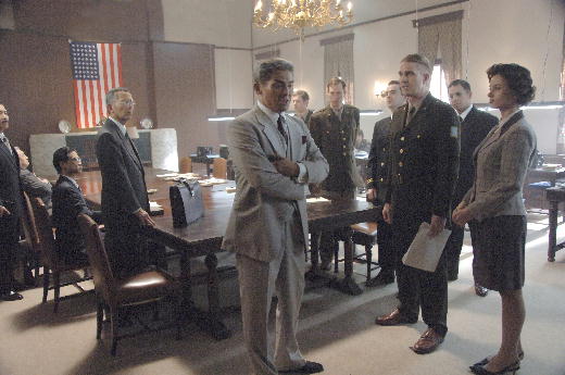 戦争が終わると、待っていたかのように知識人たちが民主主義を目指し、大日本帝国憲法に変わる憲法を作る動きが起きました。安蔵は、高野岩三郎(加藤剛)、杉森孝次郎、森戸辰男、室伏高信、岩淵辰雄、馬場恒吾らとともに「憲法研究会」に参加し、新しい時代にふさわしい憲法の草案作りに徹します。メンバーは、いろいろな国の憲法を研究し、天皇について表現、戦争の放棄、思想の自由、女性の地位についてなど、苦労し対話を重ね煮詰めていきました。
