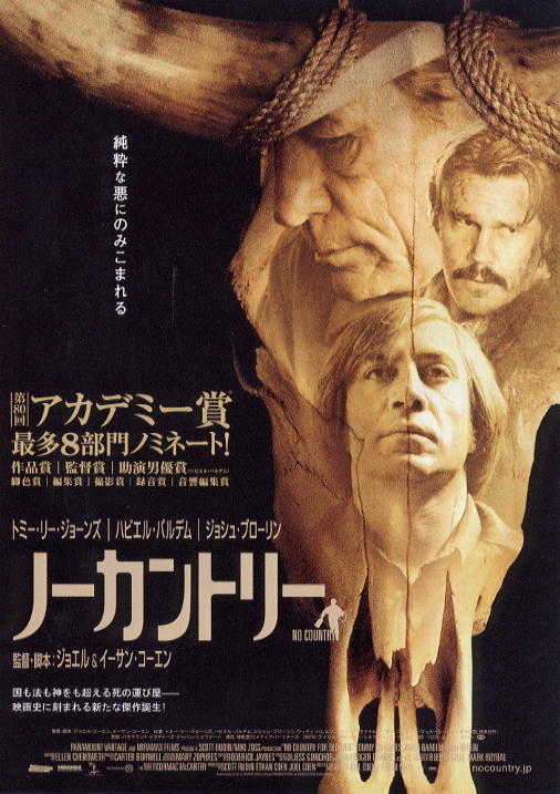 たくさんの映画賞を受賞し、また多くの助演男優賞を受賞したハビエル・バルデムが来日して話題となった「ノーカントリー」。日本でも公開後、観客動員数がぐんぐんと伸びています。この映画は、悲惨な殺人現場で手に入れた大金を持って逃げる男を追う殺人鬼と、男の行方を心配して殺人鬼を追う町のベテラン保安官の追跡を描く、手に汗握るサスペンスです。この暴力映画が、アカデミー賞でも4部門を制覇するなど、どうしてこのようにたくさんの賞を受賞することができたのでしょう。この映画の何が、人々をひきつけているのでしょう。