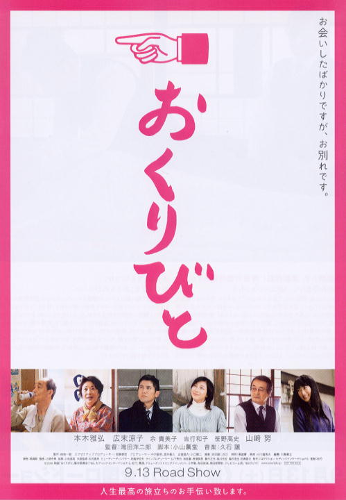 条件のよい「旅のお手伝い」という広告を見つけ、事務所を訪ねた。棺桶が立てかけてある殺風景な事務所にいたのは、おいしい紅茶に目がない事務員(余貴美子)だった。やがて帰ってきた社長の佐々木(山崎努)は、大悟をひとめ見て採用を決める。しかしその仕事は「旅のお手伝い」ではなく「安らかな旅立ちのお手伝い」だった。