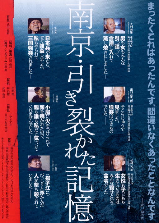 2008年公開されるも、上映取り止めの映画館が続出したドキュメンタリー映画「靖国」の中で、「南京大虐殺」は宗教がでっちあげたとものとして否定する署名運動を行っている光景がありました。このように「南京大虐殺」の論争は未だに続き、「南京虐殺」をテーマにした内容の映画上映は難しいものがあります。そんな厳しい状況の中、当事者たちの孫に当たる若い世代の武田倫和氏(1979年生まれ)が編集・監督し、「南京大虐殺」の加害者と被害者の証言を集めたドキュメンタリー映画が東京で上映されることになりました。
