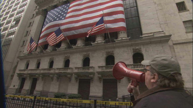 ムーア監督は、ドルマークのついた袋を手に、ウォール街へと向かいます。ニューヨークの証券取引場のビルを、警察が使うような立ち入り禁止の黄色いテープで取り囲みます。ニュースや報道番組ではわからなかったアメリカの人々の現実が描かれていきます。2時間があっという間に過ぎていき、ムーア監督に、もっともっと現実を見せてほしいと思いってしまいます。