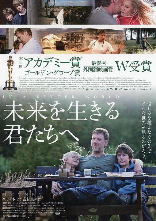 監督は1960年デンマーク生まれの女性監督で、すでに数々の作品が賞に輝き、「未来を生きる君たちへ」というスケールの大きな、そして人間の奥深いところにある心を描いた作品で、アカデミー賞とゴールデン・グローブ賞の最優秀外国映画賞受賞という栄光に輝きました。