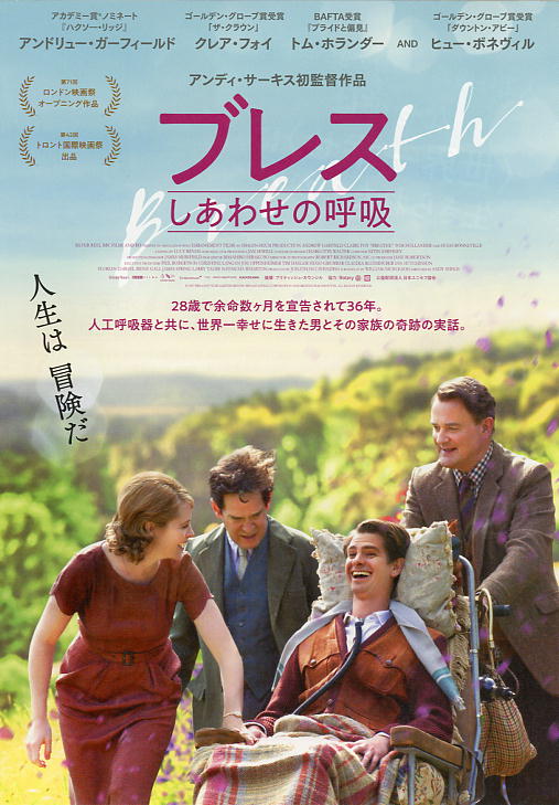 1950年代に、ポリオウィルスに感染して首から下が麻痺して動かなくなり、人工呼吸器がないと2分で死んでしまうという、病院のベッドで寝たきりの状態に突き落とされた28歳の男性が、妻と友人の努力と知恵によって、車イスに乗ってどこへでも移動できるようなるという、今では当たり前の道を切り開いていった夫婦の実話にもとづくドラマです。「ブリジット・ジョーンズの日記」「エリザベス」などの名作を生んだアンディ・サーキス監督が、ご自分の両親の姿を描き出しました。動かない体となった父親を演じるのは、「ソーシャル・ネットワーク」「アメイジング・スパイダーマン」「沈黙」など、個性的な役を演じてきたアンドリュー・ガーフィールドです。