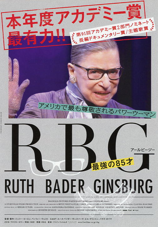 タイトルの「RBG」とは? これは、アメリカの最高判事のルース・ベイダー・ギンズバーグの頭文字。85歳の彼女、アメリカで、スーパーヒーローとして、最も尊敬されているパワーおばあさん。1933年生まれの彼女が大学生となった時代は、まだ女性の職業が認められていなかった社会。弁護士資格を取ったにもかかわらず、女性の弁護士は必要とされず、ニューヨークで彼女を雇う事務所はなかった。