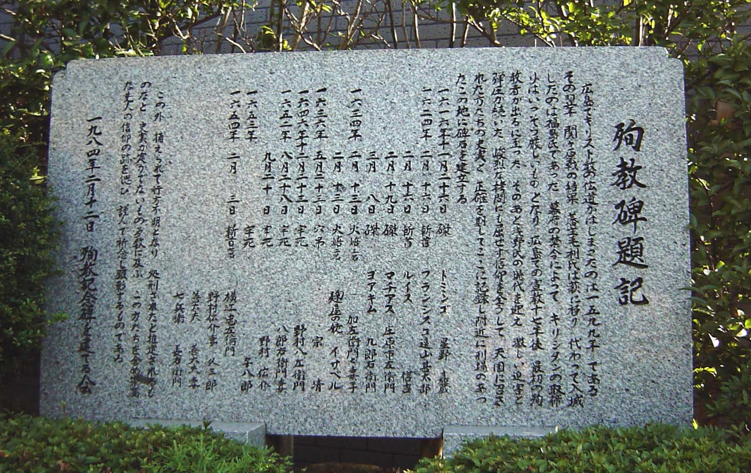 広島市己斐に「広島キリシタン殉教の碑」があり、フランシスコ遠山甚太郎とマチアス庄原、ヨアキム九郎右衛門の名も刻まれています。