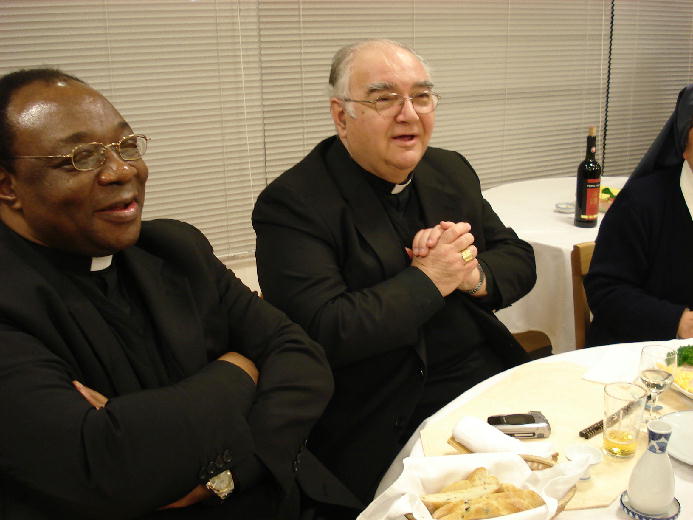 イタリア出身のアルベルト・ボターリ・デ・カステッロ大司教と、コンゴ出身のレオ・カレンガ参事官です。着任されてからはじめて訪れてくださいました。