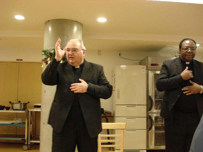 | 管区長の歓迎のあいさつ | カステッロ教皇大使(右)とカレンガ参事官 |