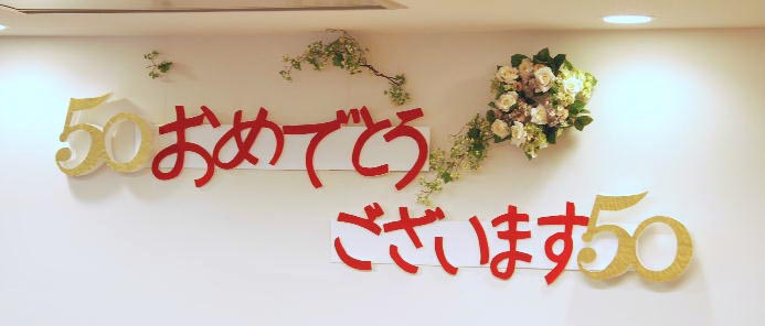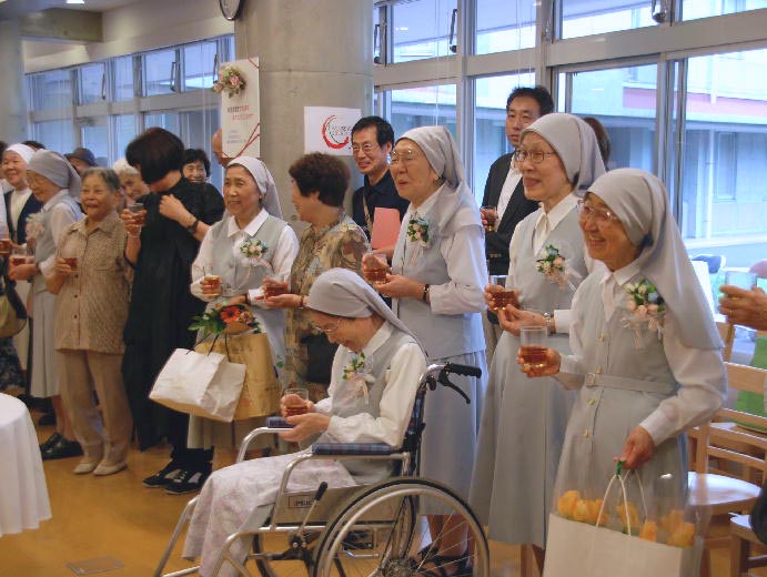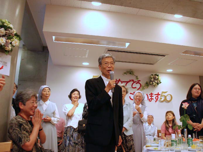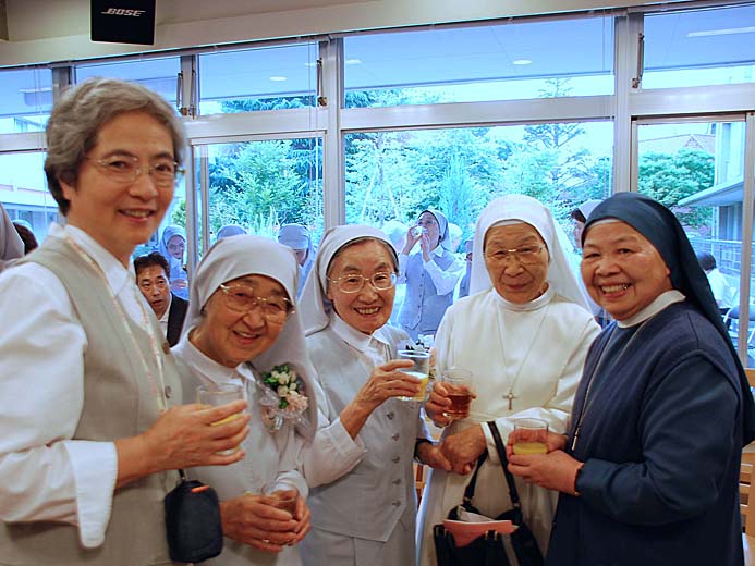 たくさんの方々のお祝いをいただきました。なつかしい人々との出会い、そして楽しい会話のうちに祝賀会は進みました。50周年を迎えた姉妹たちは、翌日、病気療養中の2人の姉妹を見舞い、ともに50年の歩みを感謝しました。