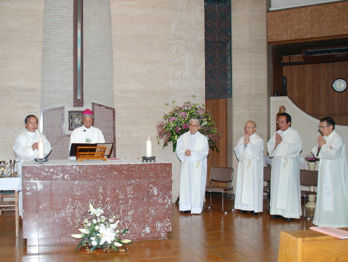 ミサの司式は東京大司教区の岡田武夫大司教、そして、聖パウロ修道会から、管区長の山内堅治神父はじめ、池田神父、永谷神父、赤波江神父、鈴木神父が共唱ミサをしてくださいました。