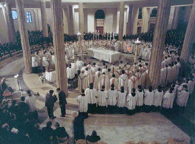 この手記を引用しながら、アルベリオーネ神父の神との決定的な出会いは1901年1月1日新しい世紀を迎えるための4時間の聖体礼拝の時のことでした、と続けたロアッタ神父の説教は、中味と彼の美しい声のもとに聖堂に響いて、参加者の深い沈黙の中に受け入れられ、祈りに導かれ、あたかも創立者を囲んで天上と地上の会員たちが一つになっているように響いていました。