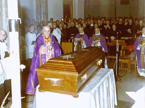 翌12月1日、創立者の遺体は生前に彼がいつも訪問したり、見ていた主な使徒職の場を通り、聖パウロ女子修道会の庭、聖パウロ修道会の庭を通って、ソットクリプタ(地下聖堂の下にある聖堂)に到着し、ジャッカルド神父やシスターテクラ・メルロの眠っている同じ所に納められ、埋葬式も無事終了しました。