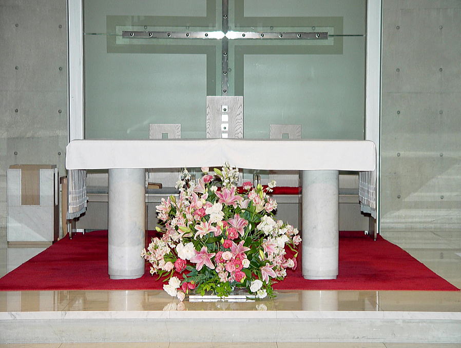 高輪教会は、徳川家光によるキリシタン迫害の象徴ともいえる「江戸の大殉教」の殉教地・札の辻に近い教会であることから「殉教者の元后聖マリア」にささげられている。