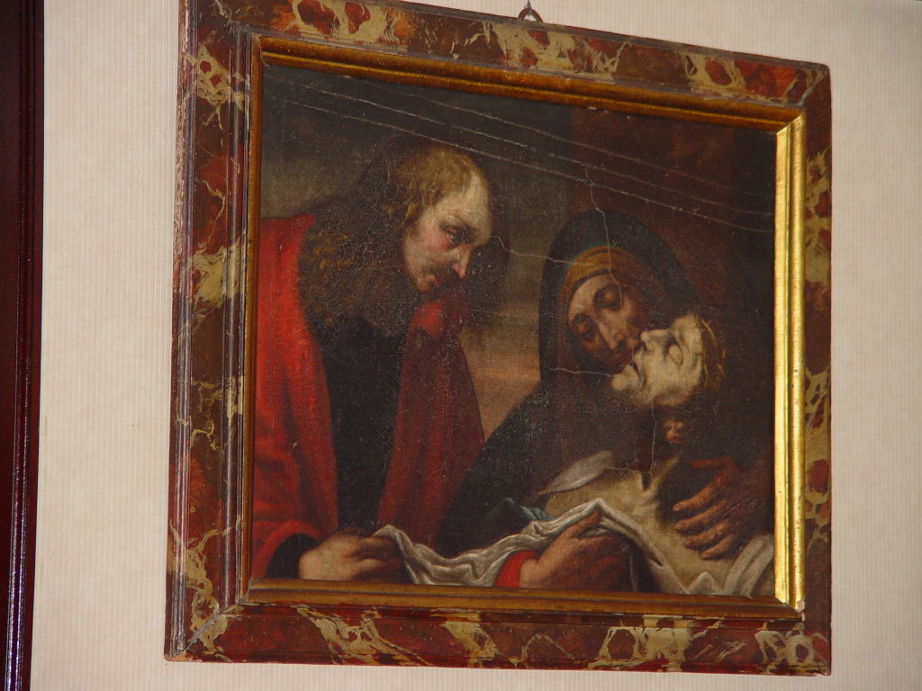 人数が多いときは、仕切りをはずし小聖堂横の部屋も聖堂として使用できるようになっている。この部屋には、十字架から降ろされたイエスを抱く聖母の古い大きな油絵が掛けられ、歴史を感じた。