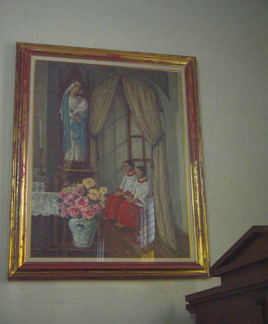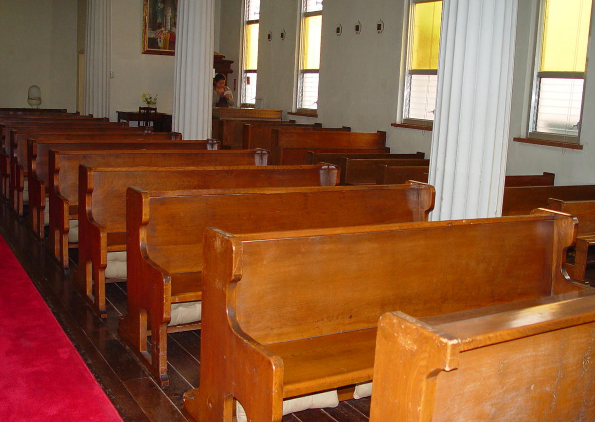 大震災の3年後、1926(大正15)年11月、新聖堂の起工、翌年1927(昭和2)年4月10日に竣工、レイ大司教により献堂されました。新聖堂はレイ大司教の希望によりギリシア建築パルテノン型の木造モルタルで、中央の信徒席は畳敷きでした。