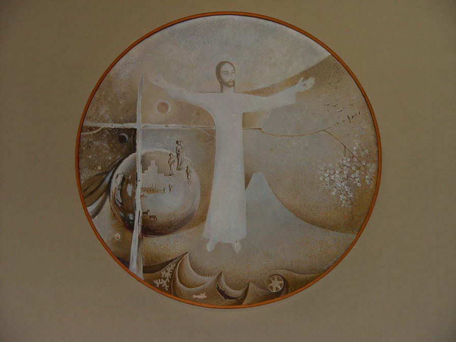 ![]() 聖堂正面の 「宇宙のキリスト」 |