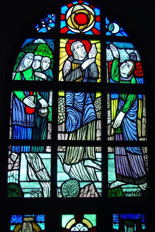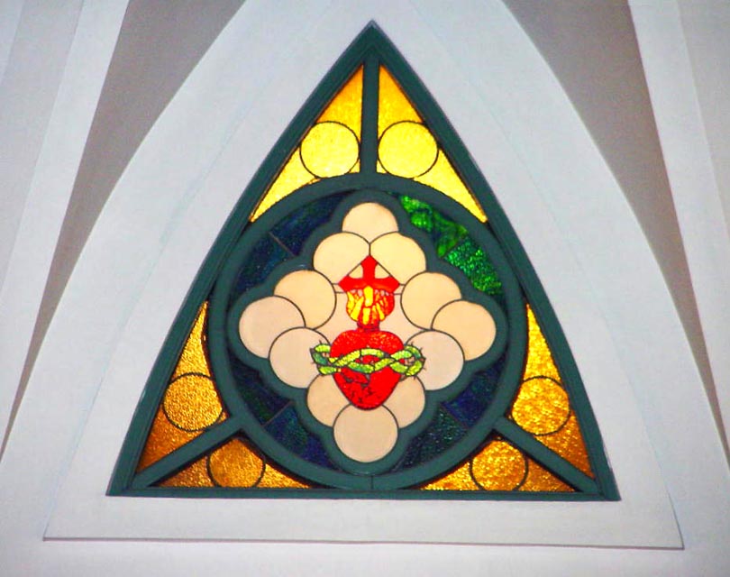 ![]() 祭壇後方み心の ステンドグラス |