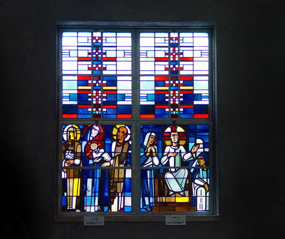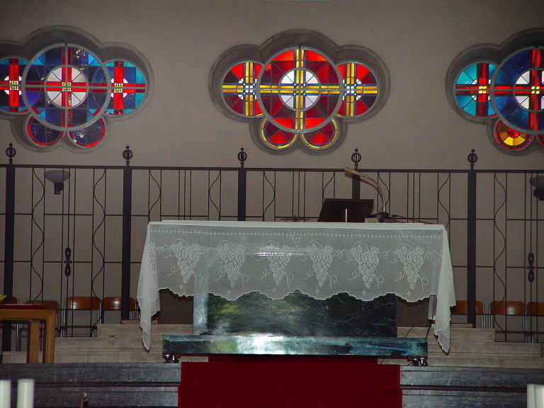 ![]() 脇祭壇と献堂の発案者 フーゴー・ラサール神父 のレリーフ |