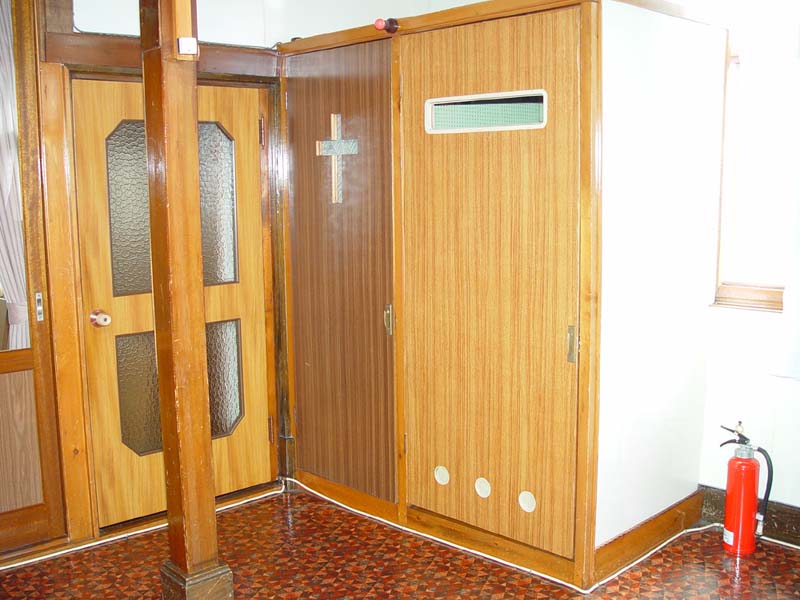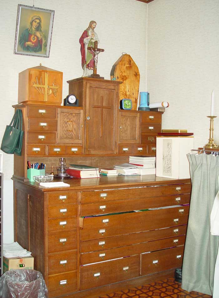 木内神父を先頭に信徒の献身的な働きによって、ブロックづくりからはじめて道路壁、司祭館、聖堂の拡張増築を行い、家の裏の土蔵に十字架と鐘楼をのせ、いかにも教会らしい建物とされました。1952(昭和27)年11月26日聖堂増築完成献堂式が行われました。