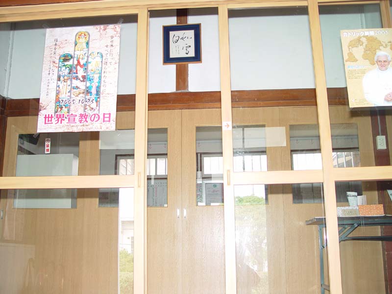 1949(昭和24)年10月初代主任司祭木内藤三郎神父が着任し、カトリック富岡教会の分教会として、11月13日に献堂式が行われ、住之江教会の第一歩が踏み出されました。