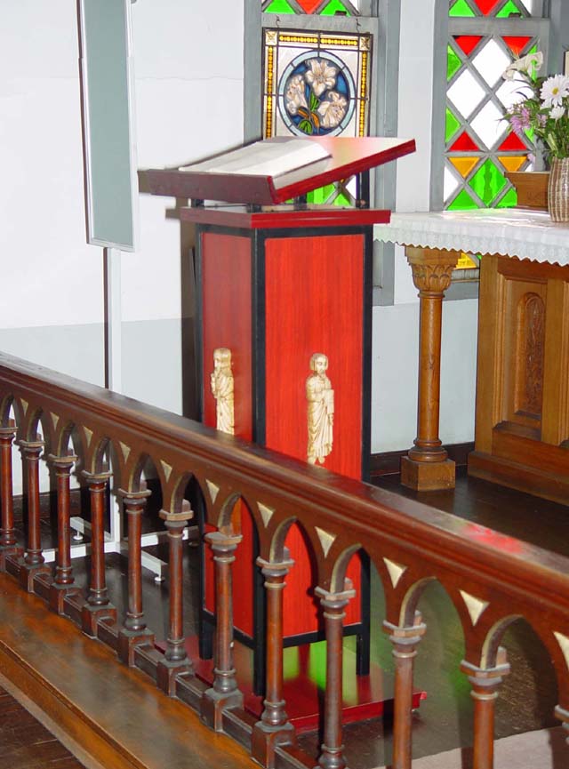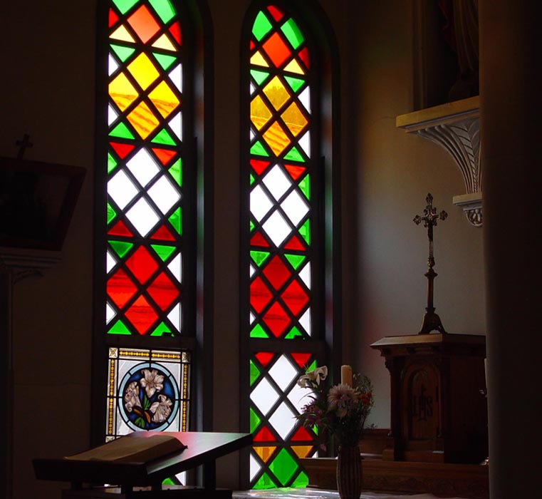 聖堂内のステンドグラスには、迫害の史実が描かれ、今も拷問の様子などを知ることができます。