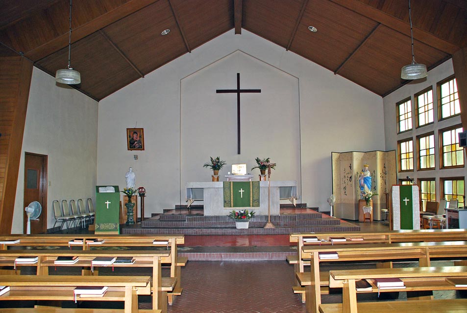ラローズ神父が市内松木町に教会移転建築のために力を尽くし、1954(昭和29)年に松木町教会が落成しました。