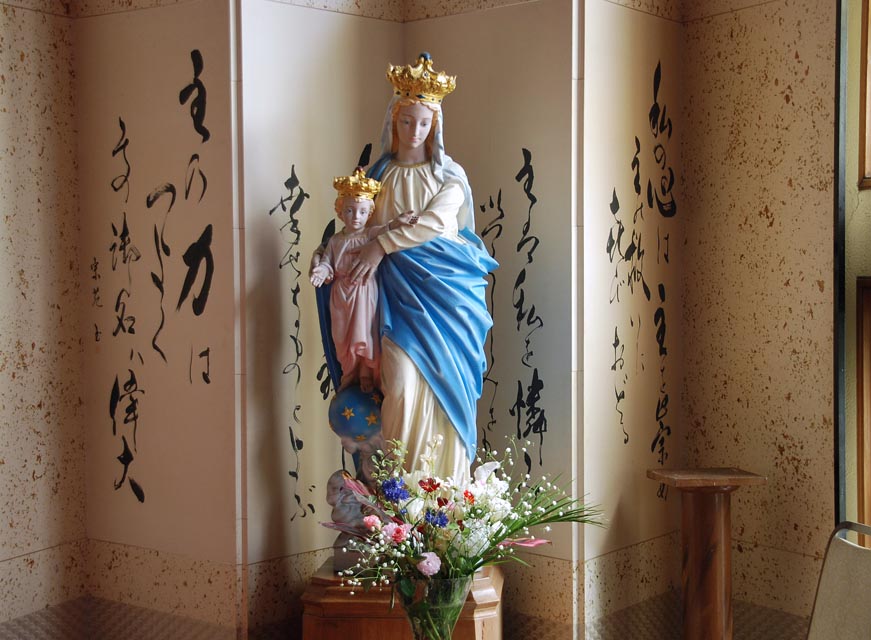 ![]() 門の横にある 「よき勧めの聖母」像 |