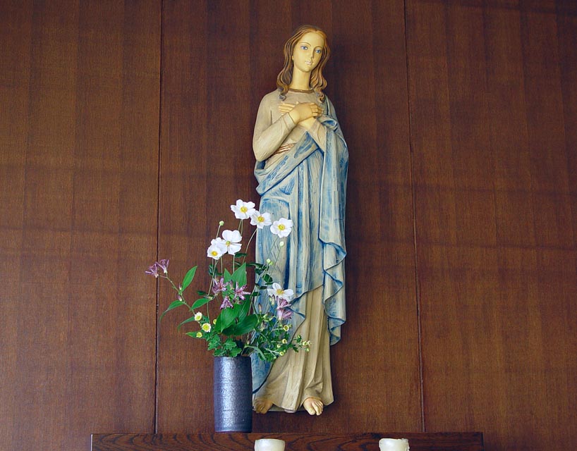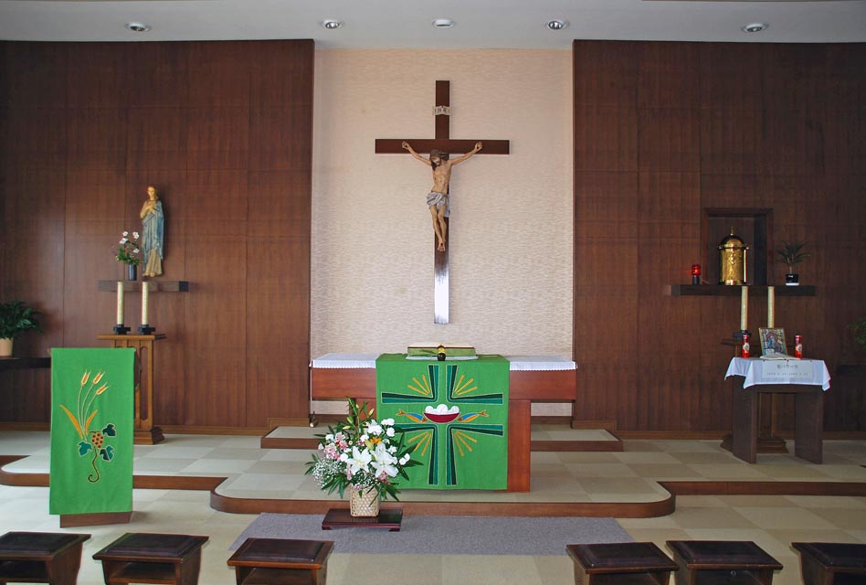 1966年には、幼稚園と司祭館が建設され、幼稚園ホールで主日のミサが行われるようになりました。平日のミサや集会は司祭館の小聖堂で行われ、司祭も常駐するようになりました。