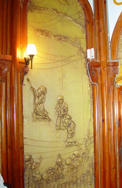 また、正面祭壇の壁面には、生月の悲しい迫害の歴史を物語るレリーフが描かれています。