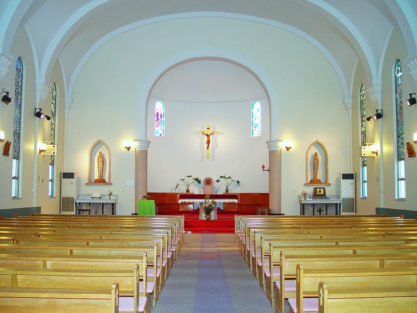 初代主任司祭となった田中英吉師は、聖堂の建設に着手し、1957(昭和32)年3月17日に聖堂の献堂式が行われました。