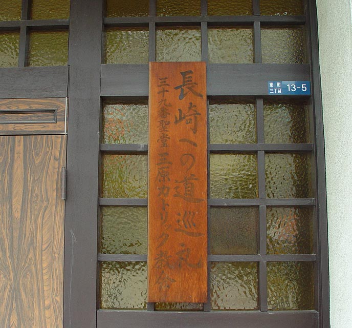 1950(昭和25)年2月三原市舟屋町の信徒所有の借家2階に祭壇を設け、「三原カトリック教会」の門標が掲げられました。