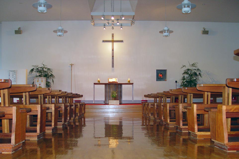 1998(平成10)年3月に現在の新聖堂の献堂式が行われ、2002(平成14)年3月にはステンドグラスが入りました。
