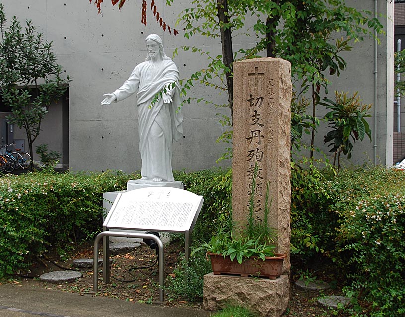 ![]() 聖堂前 イエス像と切支丹殉教顕彰碑 |