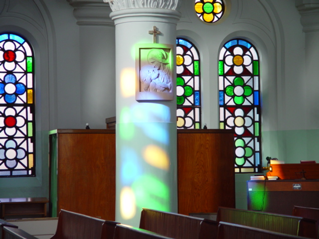 1982(昭和57)年には聖堂内に、主の誕生から昇天、聖母の戴冠、ルルドとファチマの聖母が描かれたミラノ・グラッシ作の美しいステンドグラスが設置されました。