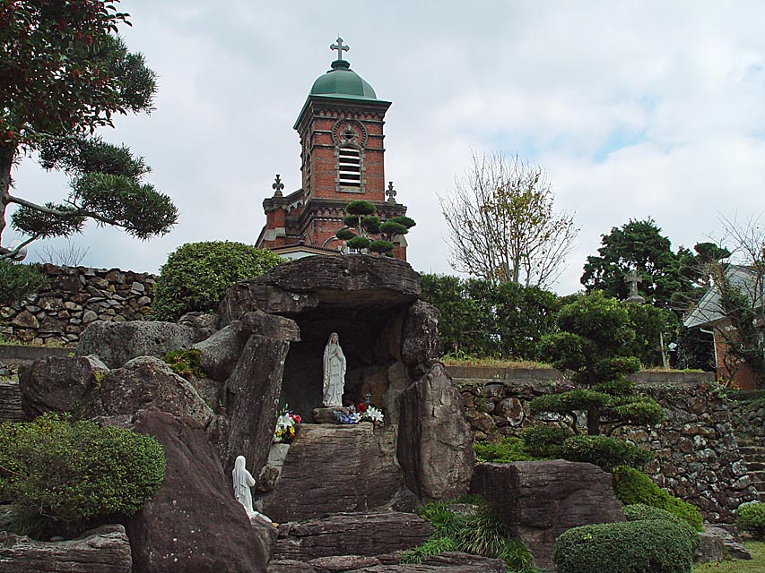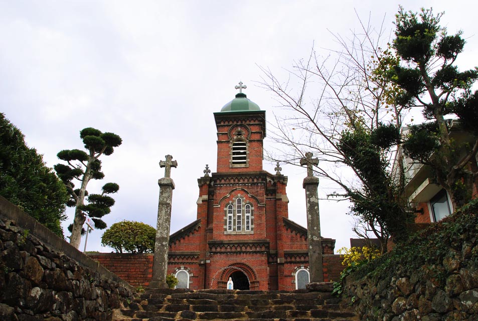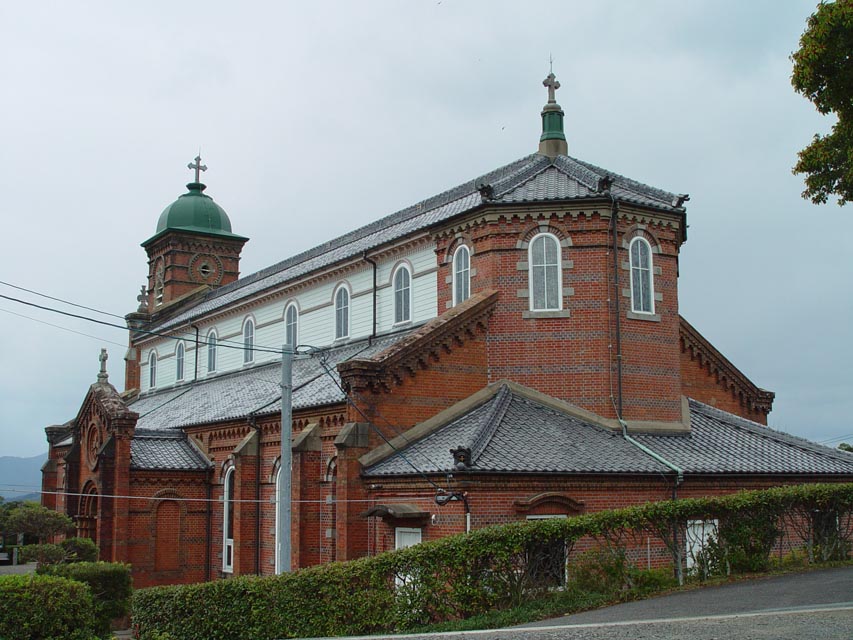 その後、外海、黒島、五島、平戸からの移住者たちによって信徒の数は増えていき、1900(明治33)年ごろには仮聖堂が建てられました。さらに本格的な聖堂の建設に着工し、信徒は苦しい生活の中、資金を集め、大人から子どもまで総出で工事にあたりました。