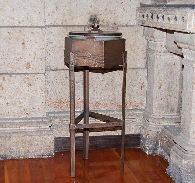 1998(平成10)年に聖堂は国の『登録有形文化財』に選定され、聖堂内に聖別式塗油記念の燭台設置されました。