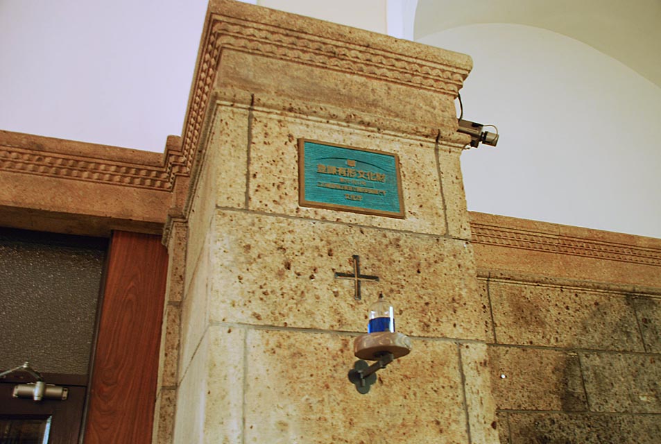 ![]() 登録有形文化財のプレートと 聖別の十字架 |