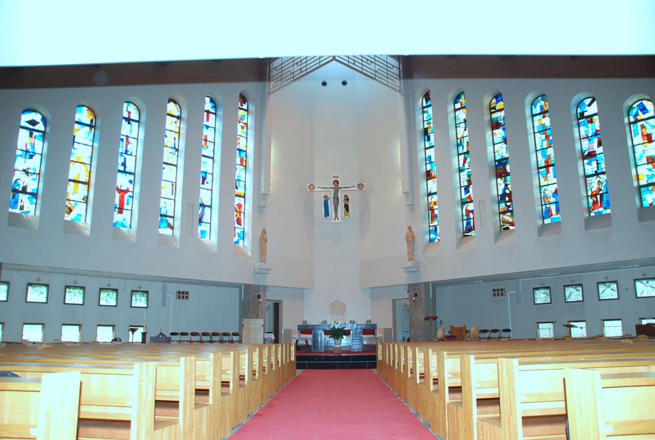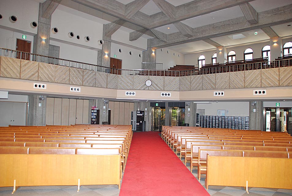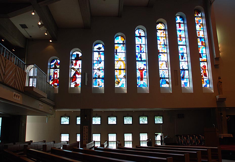 1986(昭和61)年には、木造聖堂での最後のミサがささげられて解体され、現在の聖堂・カトリックセンターが落成献堂されました。