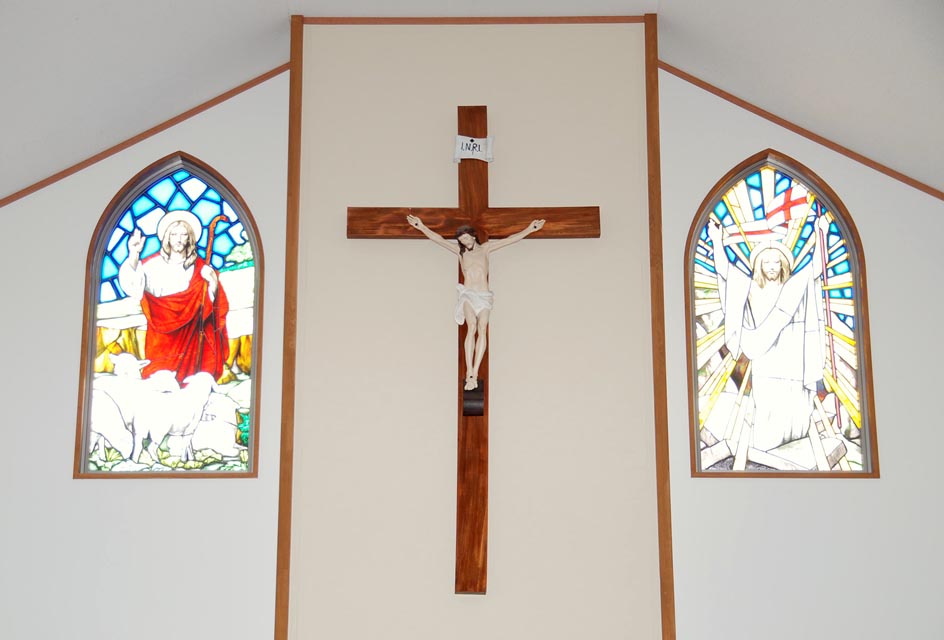 第3代の主任司祭となった牧山重光神父は、殉教者ジョアン又右衛門を知り、「ハタモン場」と呼ばれる殉教地に、木の十字架の仮殉教祈念碑を建てて広く敬仰を促されました。