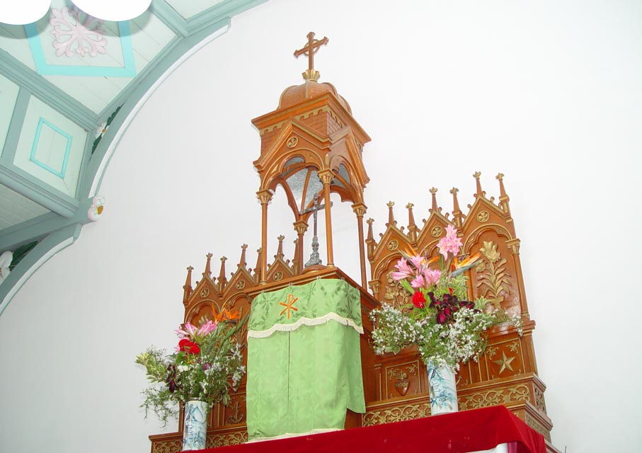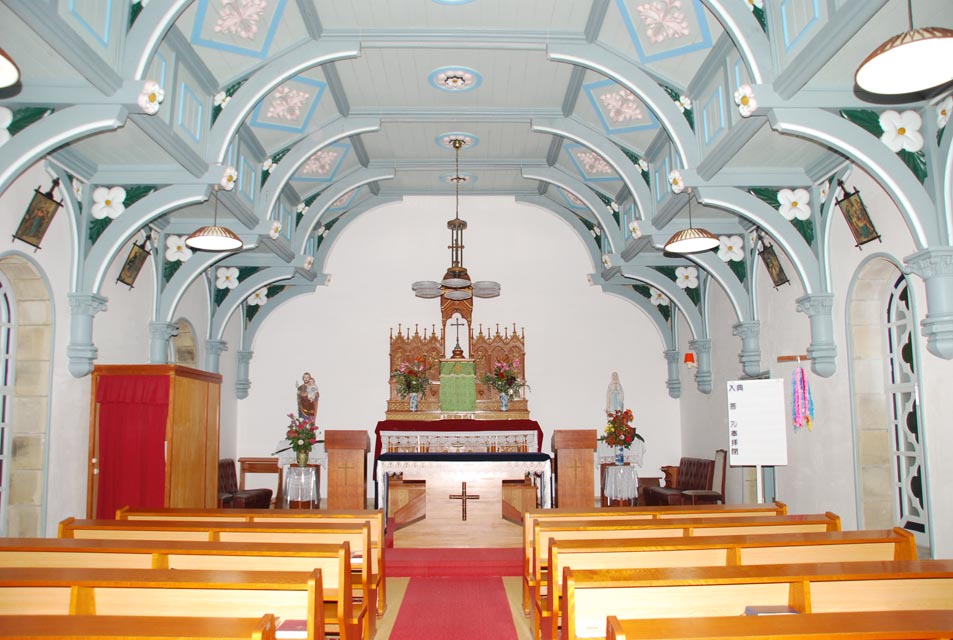 1870(明治3)年、ドミンゴ森松次郎氏が長崎でプチジャン神父の教えを受けて島に帰り、住居を青年伝導士養成所として、仮聖堂を置きました。