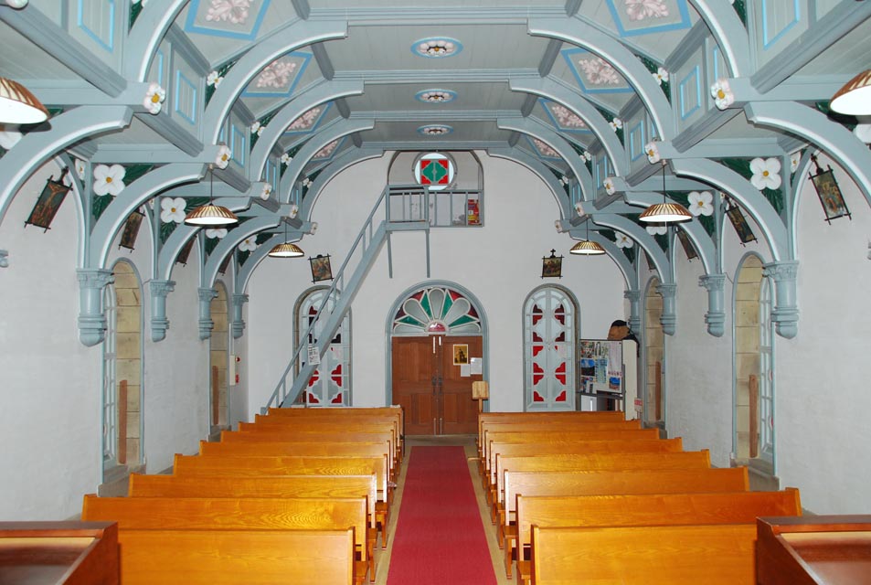 この聖堂の設計、施工は上五島で生まれた大工・鉄川与助氏で、完成までに10年近い歳月がかかりました。外観は、島内で切り出した石を丹念に積み上げられた、国内でも珍しい切石積の石造り聖堂です。また、聖堂建築の前年に建てられた司祭館も石造りです。