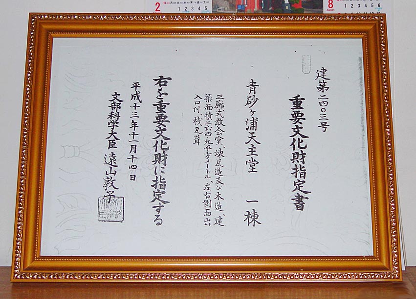 ![]() 重要文化財指定書 |