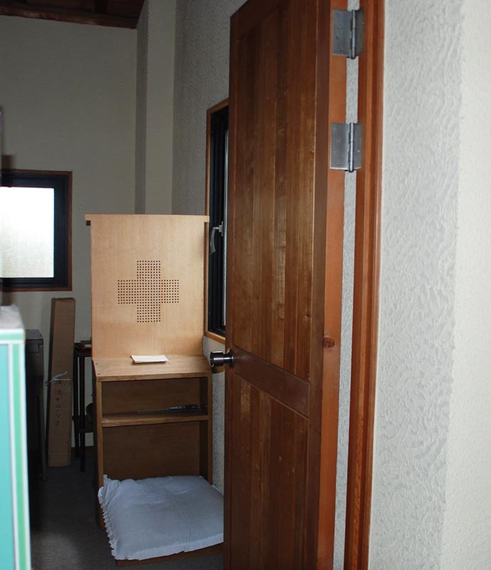 1947(昭和22)年には、現在の教会敷地を取得し、1959(昭和34)年に、山下神父が赴任して定住し、進駐軍払い下げのカマボコ型兵舎を改造した聖堂と、司祭館兼信徒集会場が建てられました。この年の11月、小豆島教会は小教区として発足しました。