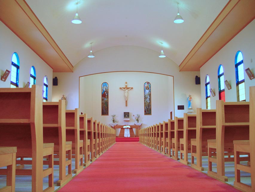 1960(昭和35年)から1970(昭和45)年にかけて、上五島町の中心である青方地区に信徒たちが集団移転したため、信徒数が急増しました。そのため、1974(昭和49)年に聖堂が建立されました。