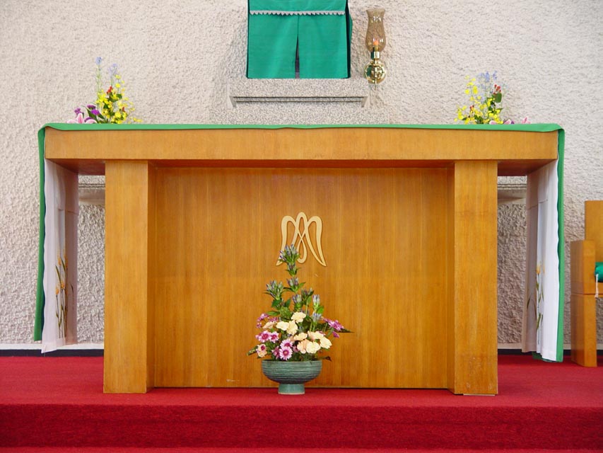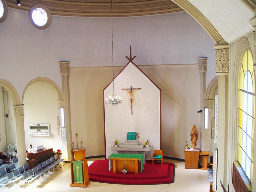 1954(昭和29)年には、クラレチアン宣教会の協力を得て現在地に仮聖堂が建てられ、カトリック高槻教会が創立されました。