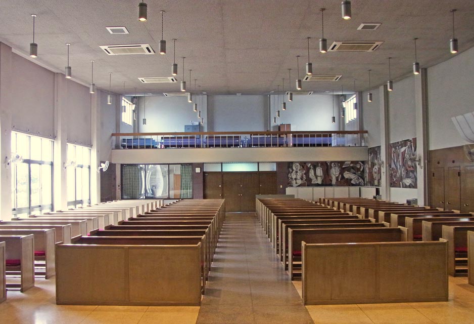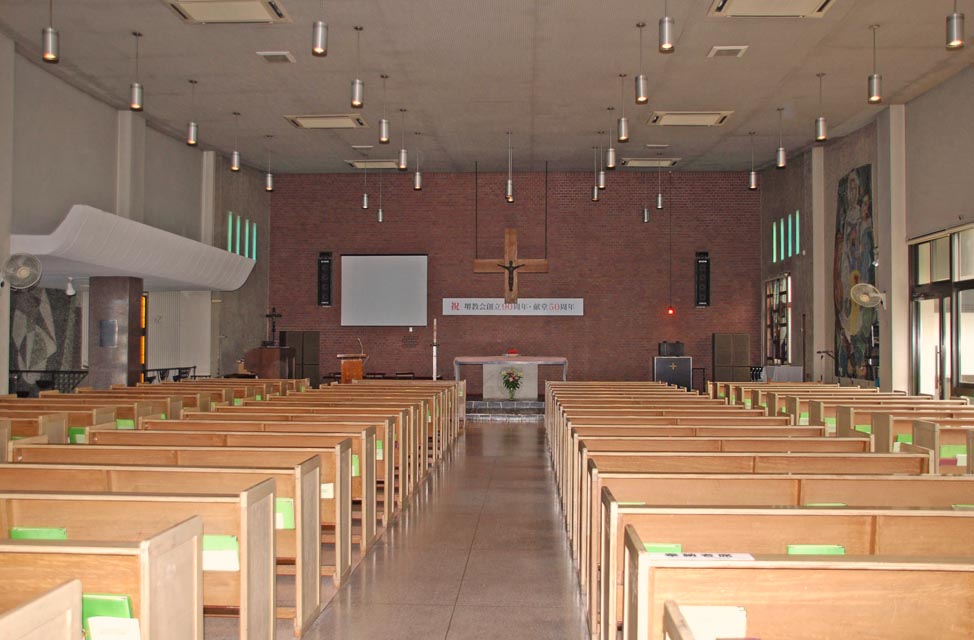 1963(昭和38)年、教会移転のために現在の向陵中町で地鎮祭が行われ、翌年、新聖堂が完成して田口芳五郎大司教の司式で献堂式が行われました。