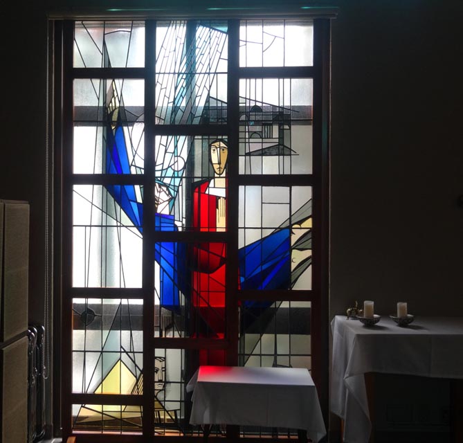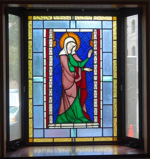 2014(平成26)年、教会創立90周年の記念に「ルイ・フランセン」銘鈑を聖堂に取り付けました。また、米寿を祝われた高野神父のご厚意によって、洗礼場にステンドグラスが復活しました。