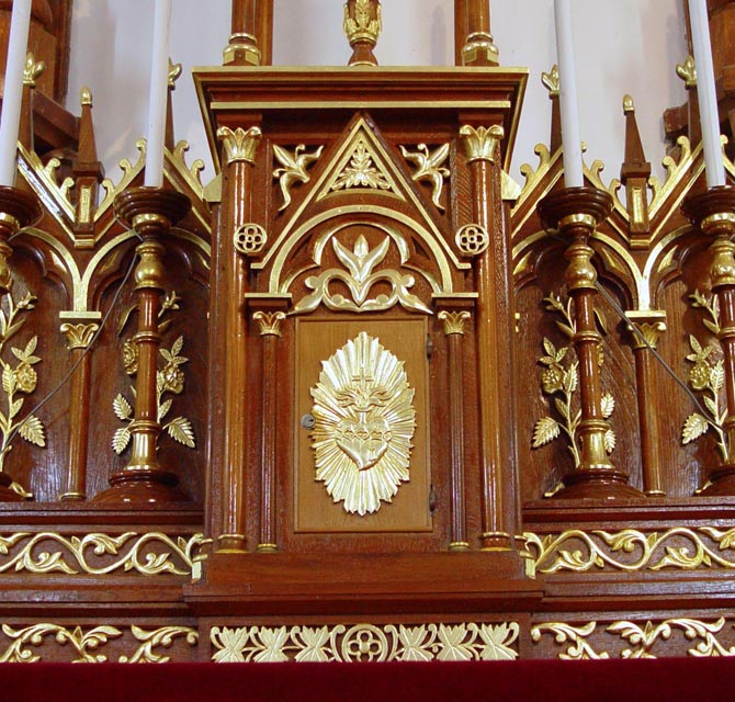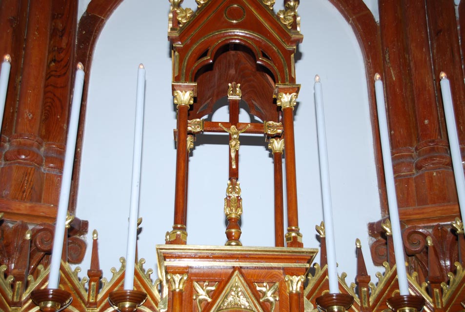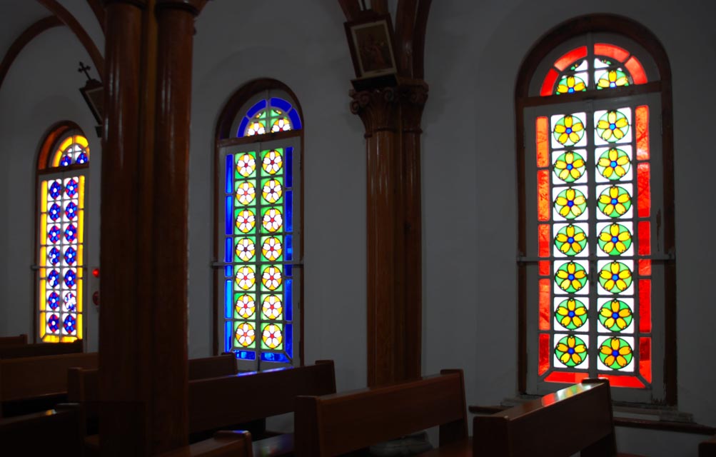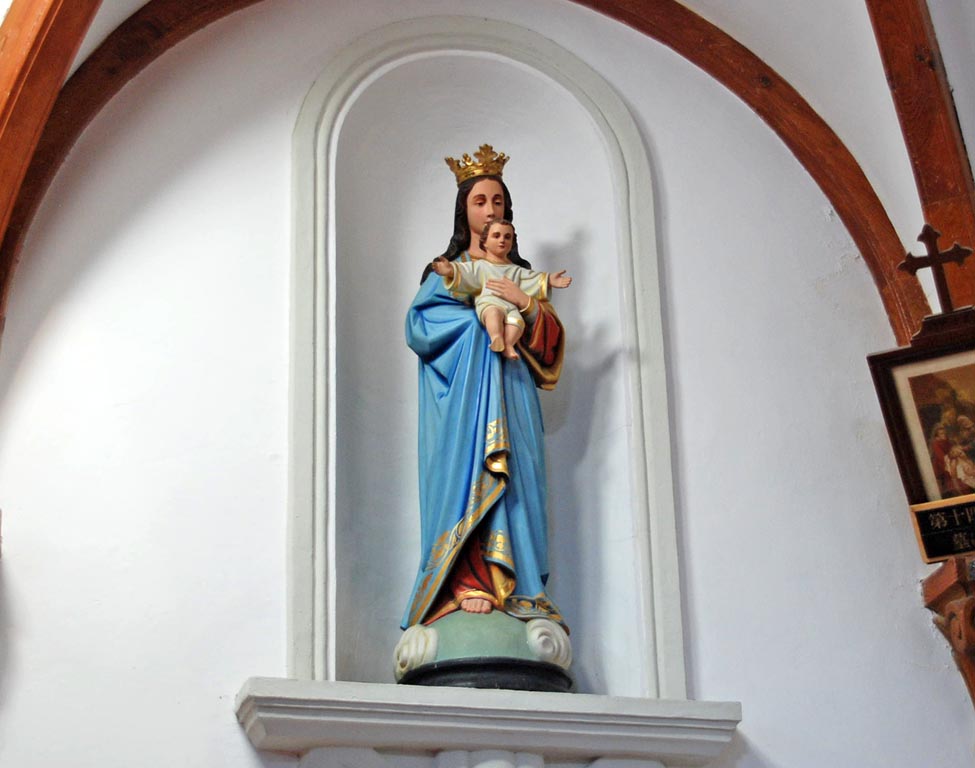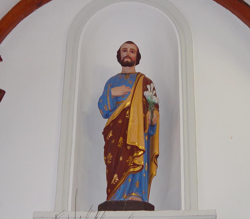 現在の聖堂の施工は、長崎の多くの教会建設に携わった五島出身の鉄川与助氏で、柱頭の彫刻は鉄川氏の父・与四郞氏によります。